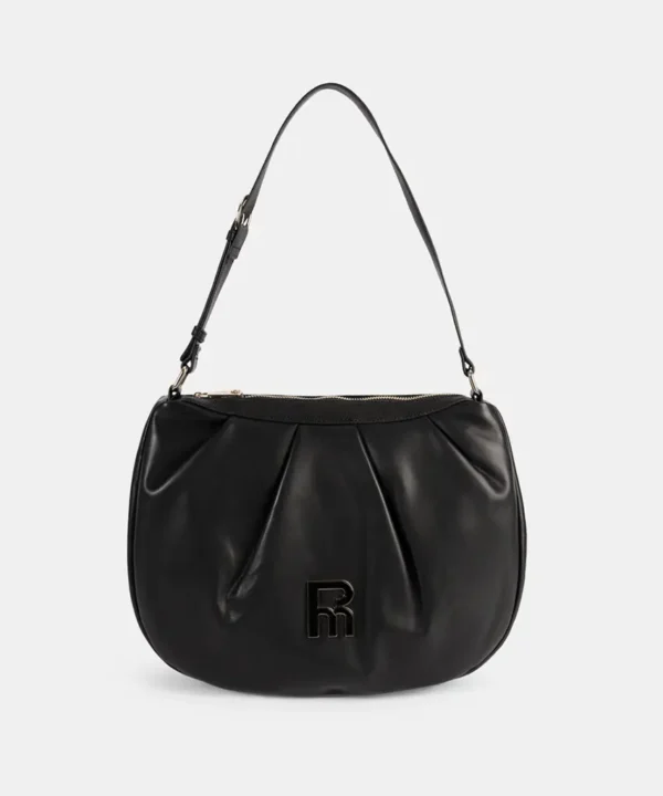 Disponible en dos colores atemporales —cuero y negro—, su acabado liso con frunces en la parte superior le da un aire moderno y desenfadado. El logo metálico frontal y los herrajes dorados elevan el diseño, aportando ese detalle sofisticado que lo hace especial.