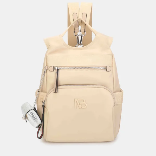 A nivel de estética, apuesta por un look limpio y moderno. El tono beige combina con todo y el acabado en nylon resistente (reciclado) con detalles en PU le da un aire actual, ligero y práctico. El logo NB va en tono a juego, discreto y elegante, y los herrajes en níquel aportan ese toque “premium” que se nota en el día a día.