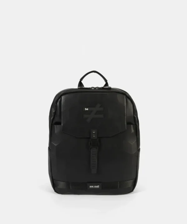 Diseñada para quienes se mueven con decisión por la ciudad, la mochila negra ADAM de Pepe Moll combina un diseño minimalista con un toque futurista gracias a su patrón geométrico en relieve. Su acabado monocromático en negro le aporta una estética elegante y versátil, perfecta tanto para el día a día como para situaciones más formales.
