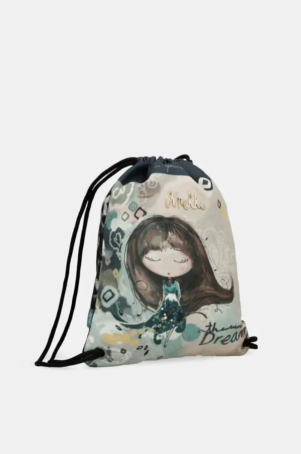 • Real: Una ilustración de Anekke en actitud meditativa transmite serenidad y confianza. El texto «The world is yours» en la parte superior y «The world of Dreams» en la parte inferior convierten esta mochila en un recordatorio diario de que todo es posible.