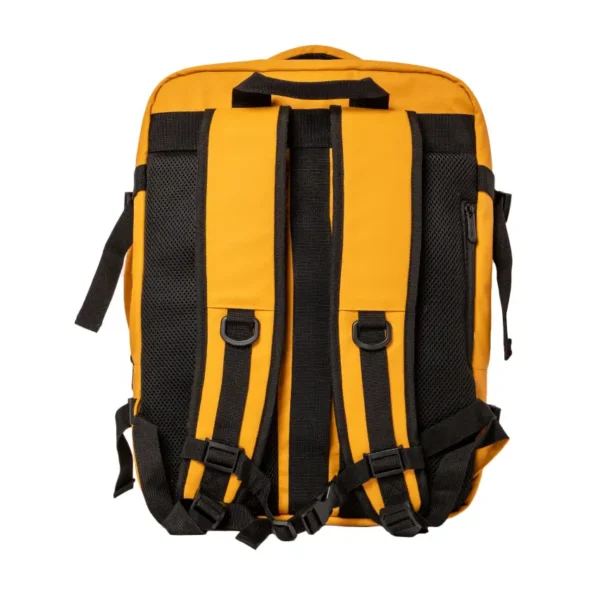 Con un diseño robusto y versátil, está disponible en 6 colores —verde, negro, azul, amarillo, caldera (rojo) y beige— todos con elegantes detalles en negro. Está fabricada en poliéster 900D waterproof con tratamiento hidrofugo, lo que la hace resistente, duradera y lista para cualquier clima.